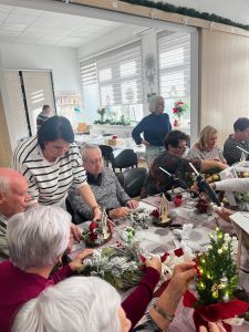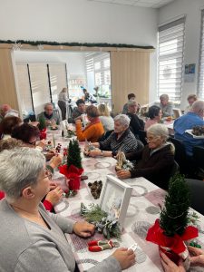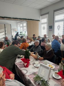 W ramach projektu „Świąteczna Przystań Seniora” odbyło się spotkanie świąteczne, w którym udział wzięło 40 seniorów z terenu miasta Dębica. Uczestnicy wspólnie wykonywali stroiki bożonarodzeniowe, spędzając czas w ciepłej, świątecznej atmosferze. Spotkaniu towarzyszyła muzyka oraz poczęstunek, co sprzyjało integracji i rozmowom. Projekt był okazją do aktywizacji seniorów oraz budowania więzi społecznych.